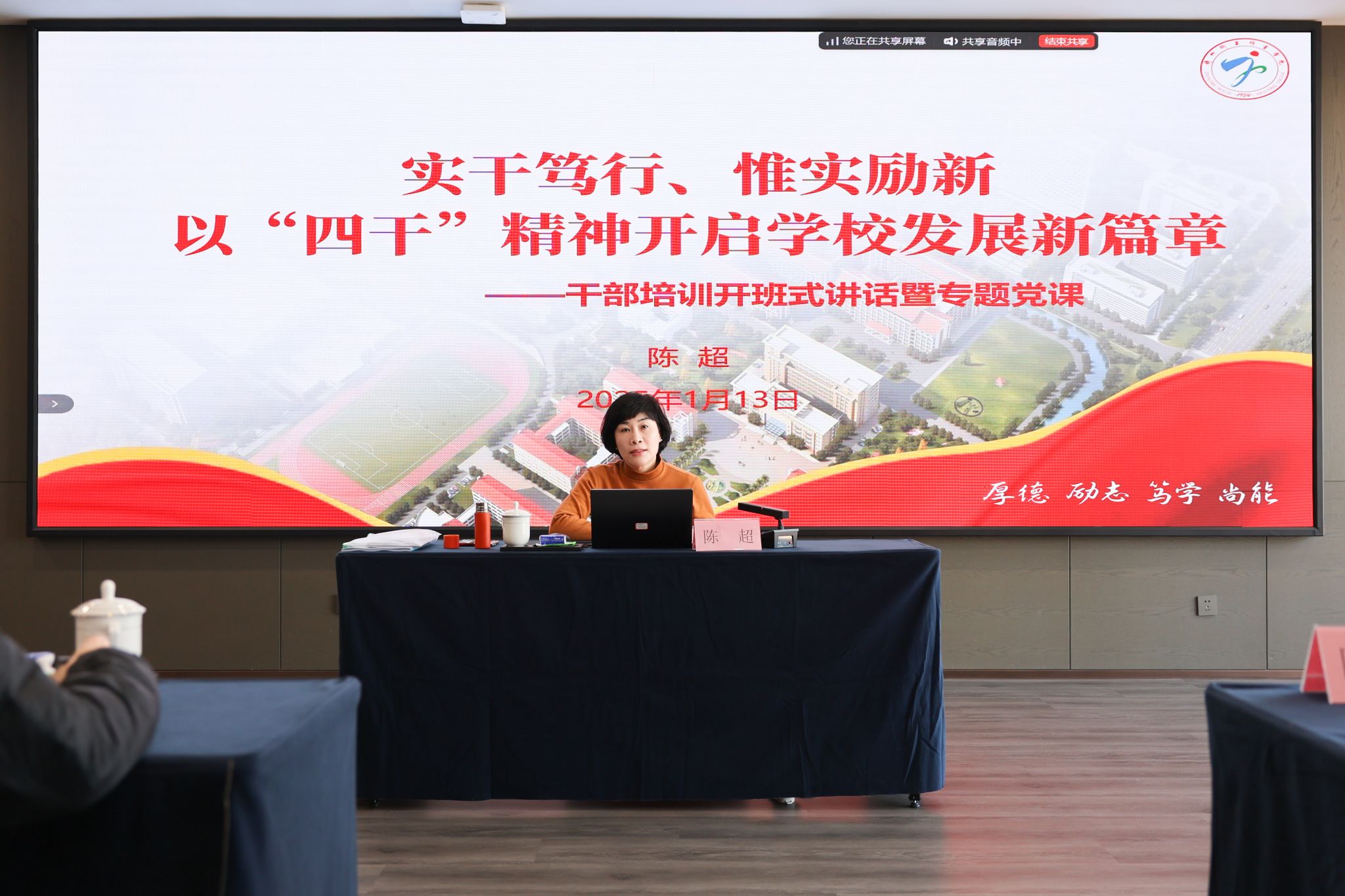 党委书记陈超作开班动员讲话,并以《实干笃行、惟实励新,以“四干”精神开启学校发展新篇章》为主题作专题党课。她指出,全体学员要加倍珍惜培训机会,全身心投入学习,做到学有所思、学有所悟、悟有所行、行有所效,为学校发展凝聚共识、汇聚合力。她强调,要忠诚干净“苦干”,坚持立德树人育英才。今年,我们即将召开学校第三次党代会,要始终坚守为党育人、为国育才,学习谷文昌先进事迹,既要苦干实干拼命干、又要会干巧干用心干,为“林巧稚式”时代新人培育汇聚各方力量,奋力拼出新业绩、建功新时代。要求真务实“真干”,坚持担当作为勇争先。大力践行习近平总书记在福州工作期间所提倡的“马上就办”工作作风,主动对标“新双高”建设体系和教育教学改革评价标准,抓牢抓实“五金”品牌打造、科研社会服务、对外合作交流等中心工作,推动各项工作提速提效提质。要开拓创新“敢干”,坚持革故鼎新走在前。主动把握和积极适应经济社会发展新常态、职业教育发展新要求,围绕学校中心工作,切实把握好顶层设计和基层探索的结合点,做优增量、盘活存量,整合资源、统筹优势,进一步在攻坚、抓实上下功夫,以改革之举展示担当之为。要团结奋进“能干”,坚持自我革命见实效。跳出“一亩三分地”的思维,始终坚持大视野关注,站在同类院校竞争发展的横向对比中、处于职业教育快速发展的纵向考量里,结合实际谋划发展的新招、实招和管用之招,为实现升本培优、建设医学名校不断努力奋斗。