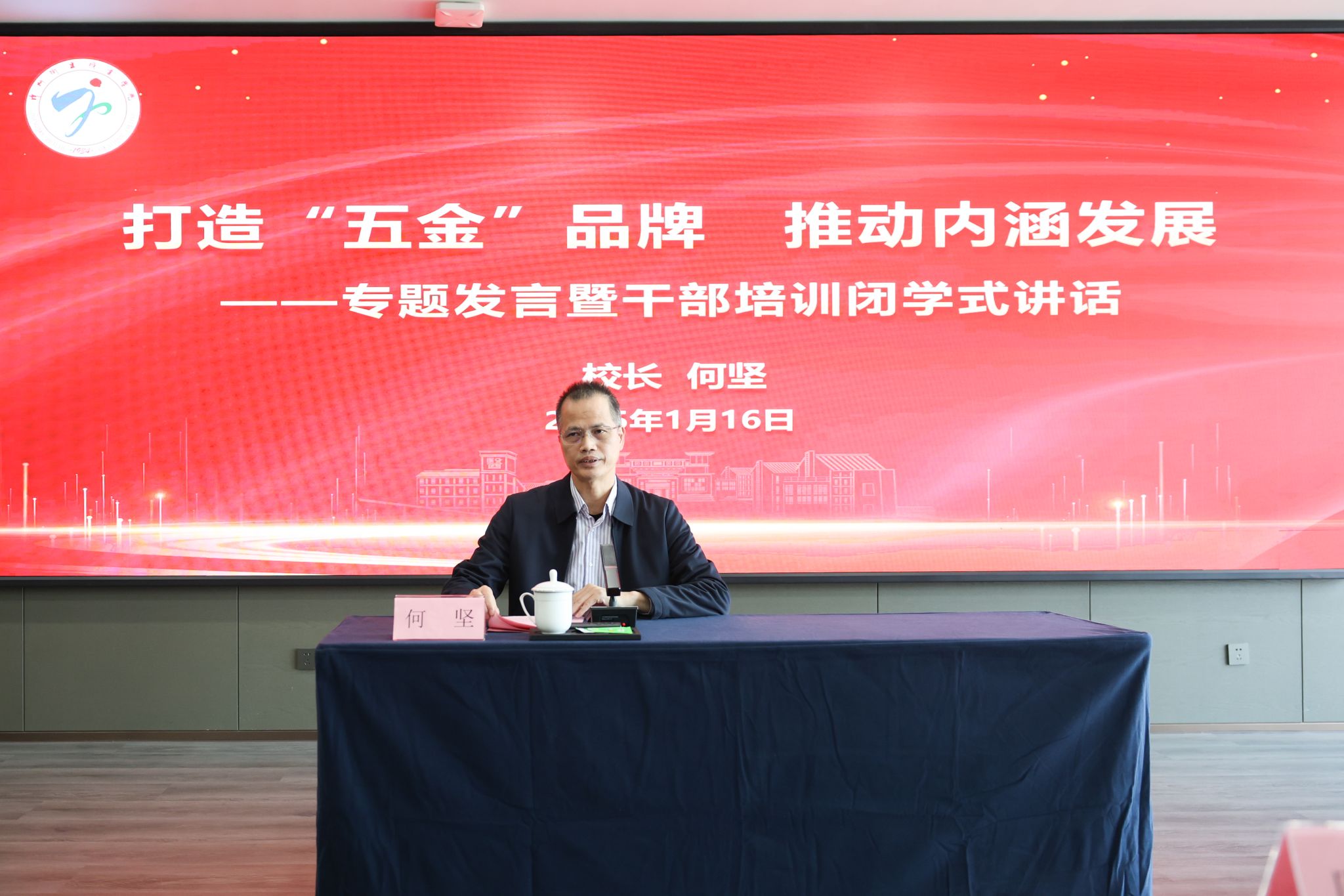 校长何坚围绕“五金”建设的内在逻辑、推进步骤和具体举措等三个方面,作《打造“五金”品牌,推动内涵发展》专题发言,并作闭学式讲话。他指出,今年是学校“十五五”事业发展规划和“新双高”建设规划的谋划之年,也是把全面深化职业教育综合改革推向纵深的关键之年,大家要以本次培训为契机,将培训成果运用到本职工作中,在各自岗位发挥主观能动性,创新开展各项工作,形成共识、上下齐心、凝聚合力,推动各项工作落地落实,努力打造医药卫生职业教育“五金”漳卫品牌,不断提升学校教育教学水平,为早日实现升本目标不懈奋斗。