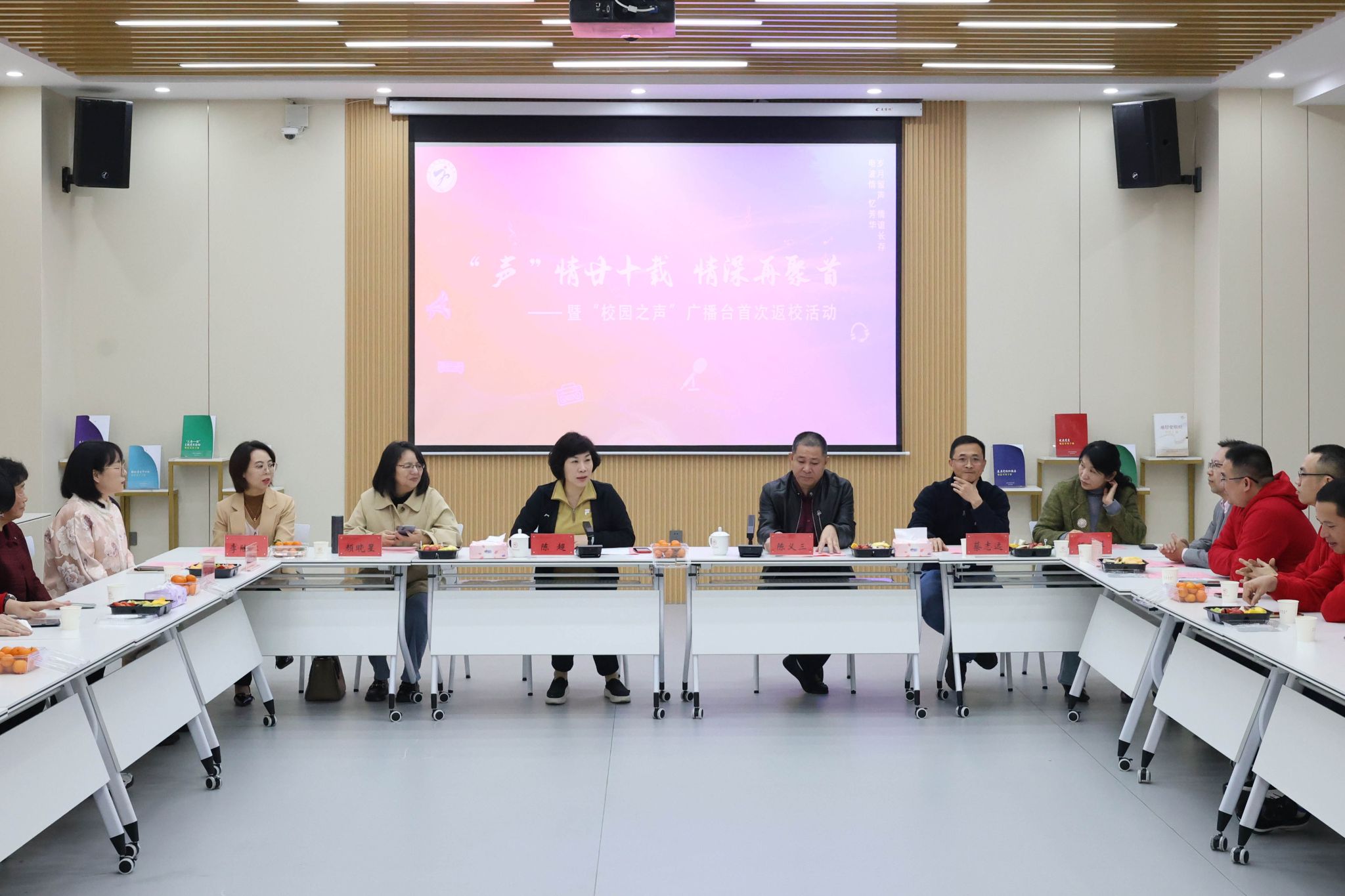 校友们依次分享了自己的感受,他们回忆起在“校园之声”广播台的日子,那些在话筒前传递声音、在稿件间斟酌字句的时光,是青春中最美好的回忆。