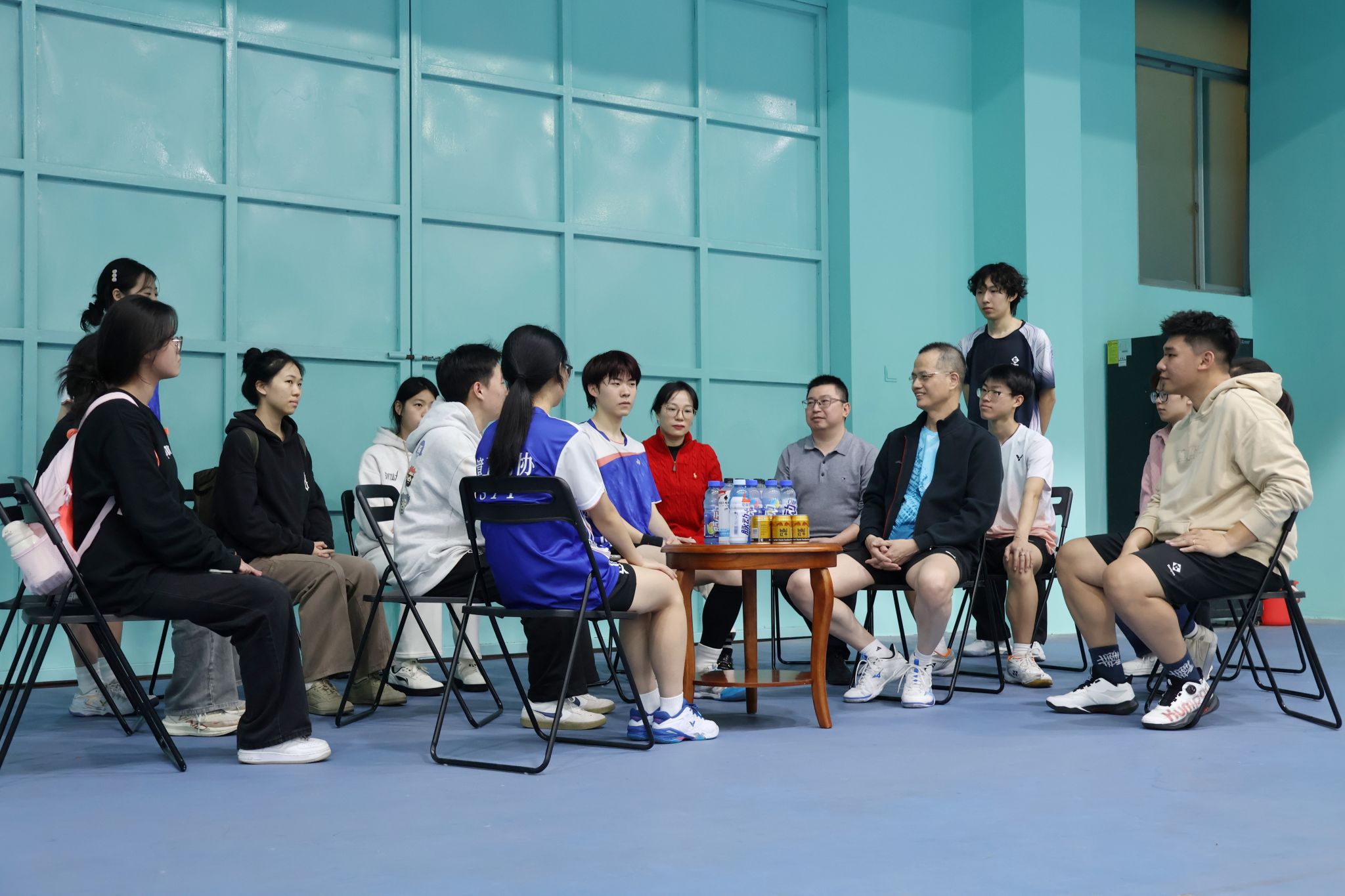 活动伊始,校长何坚与学生代表以羽毛球运动为媒,球场上切磋球技,赛后以“师长亦是校友”的身份与青年围绕学业规划、设施优化等话题深入畅谈。他强调,医学院校培养的是守护生命的“健康卫士”,同学们既要锤炼精湛技艺,更要厚植人文情怀。学校将持续完善“一站式”学生社区建设,让社团发展诉求、生活保障需求都能高效解决。