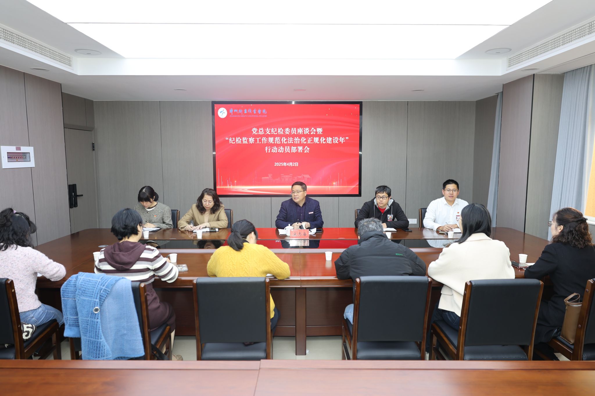 会上,宋志海与各党总支纪检委员就履职心得、经验做法、存在问题进行逐一交谈。他强调,要提高政治站位,深化思想认识。开展深入贯彻中央八项规定精神学习教育以及“三化”建设年行动,是深入贯彻落实习近平总书记和党中央重要要求、纵深推进全面从严治党的重要举措。要深刻把握开展这两项工作的重要意义,把思想和行动统一到党中央决策部署上来,以实际行动坚定拥护“两个确立”、坚决做到“两个维护”。要聚焦目标任务,狠抓推进落实。将深入贯彻中央八项规定精神学习教育作为重要政治任务,切实抓紧并落到实处,持续推动作风建设的常态化和长效化。要准确把握“三化”建设年行动目标要求,对照市纪委监委部署要求,加强统筹安排,将“三化”建设与学习教育、学校中心工作同部署、同推进、同落实,确保各项任务落地见效。要提升履职能力,强化责任担当。以“三化”建设为契机,坚持刀刃向内、自我革命,全面加强政治建设、能力建设、作风建设、廉洁建设,着力提升政治素养、专业能力和执纪水平。各党总支纪检委员要充分发挥近距离监督优势,主动参与“三重一大”决策监督,结合专业特点创新廉洁文化建设载体,把正面引导和反面警示结合起来,推动廉洁理念入脑入心,全力营造崇廉尚洁的校园风尚。