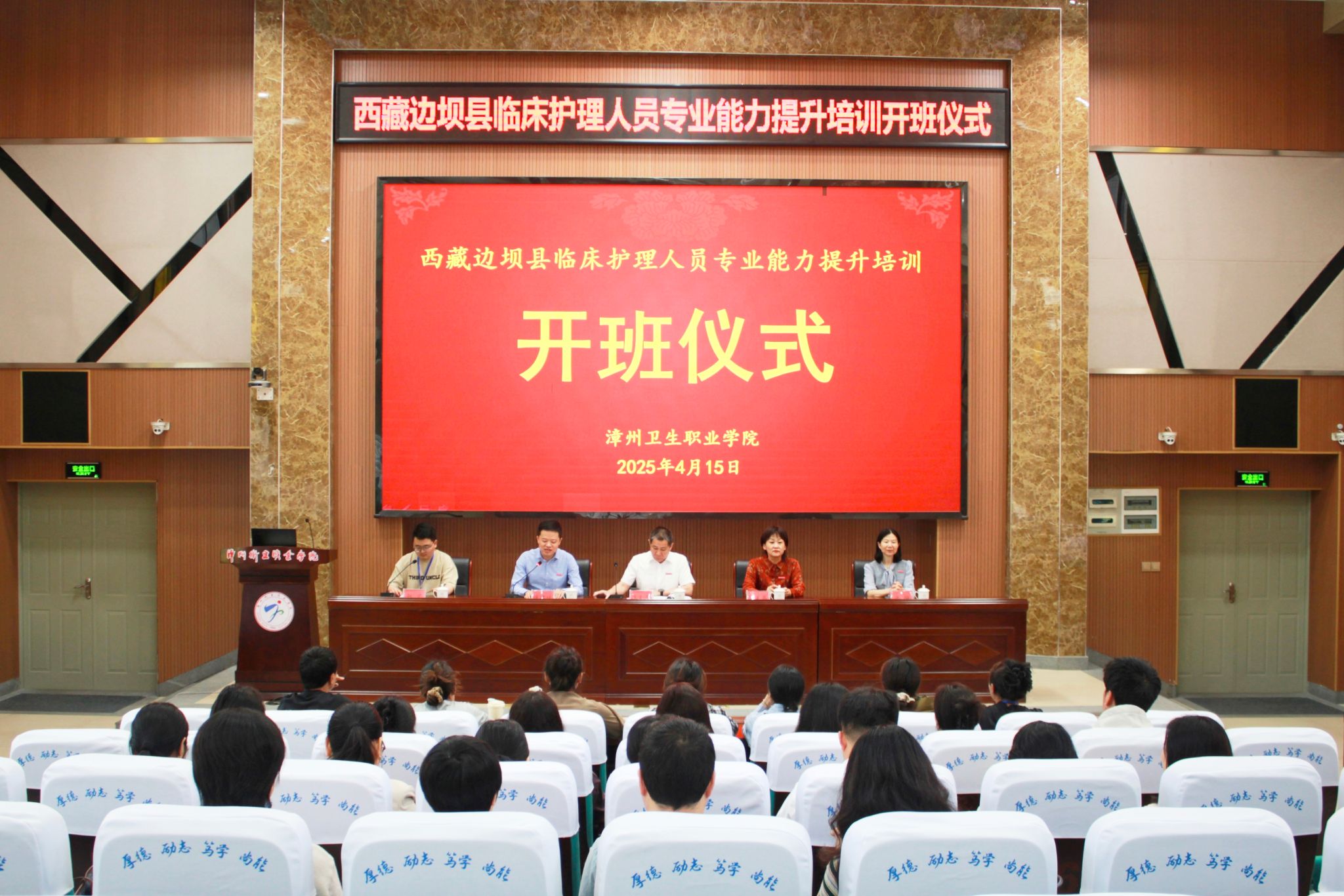 4月15日,我校举行西藏边坝县临床护理人员专业能力提升培训班开班仪式,副校长陈义三、继续教育学院院长、护理学院党政班子成员及边坝县学员代表共同出席。