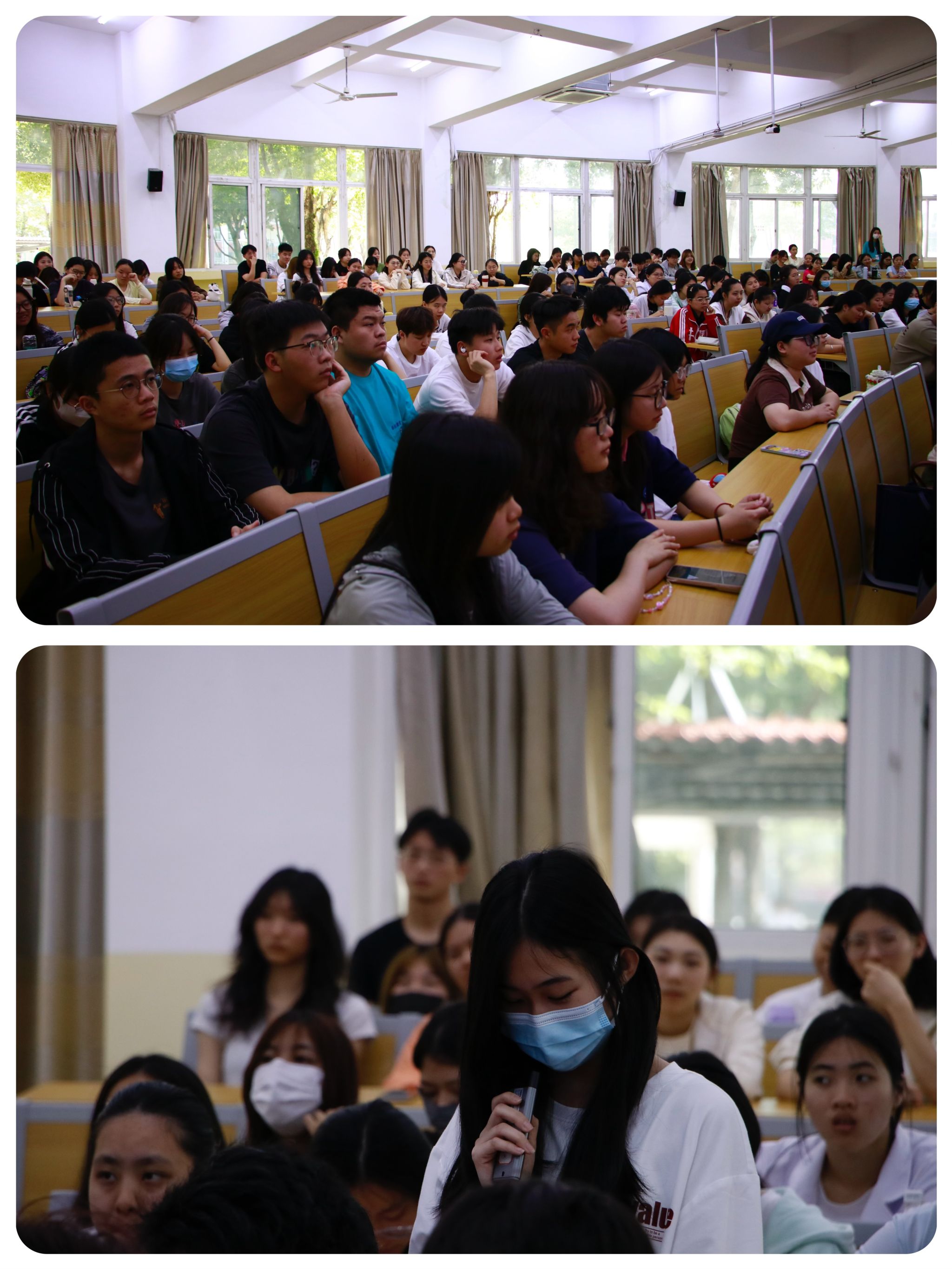 互动交流环节,现场气氛热烈。同学们就自己关心的问题,如就业前景、AI技术对医药行业的影响、行业创新等与校友展开了深入探讨。阮克玉耐心解答,结合实际案例给出了许多实用的建议和指导,赢得了阵阵掌声。