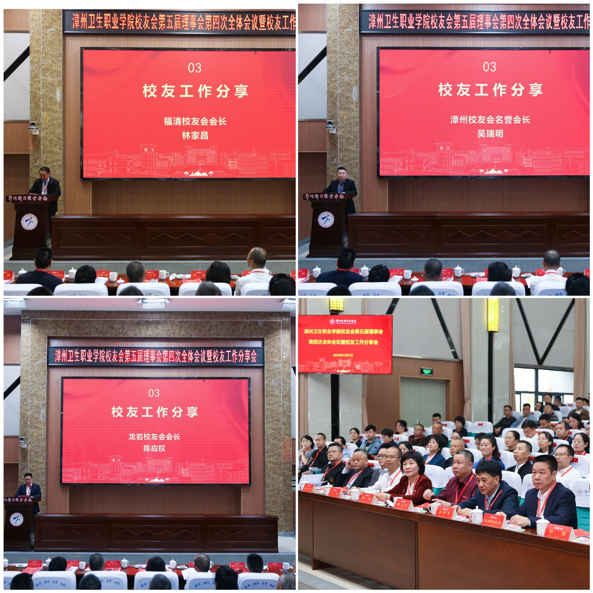 大会听取了校友会会长所作的《2024年漳州卫生职业学院校友理事会工作报告》。会议审议并通过了《漳州卫生职业学院校友会新增理事、常务理事、副会长建议名单》《漳州卫生职业学院校友理事会财务工作报告》。
