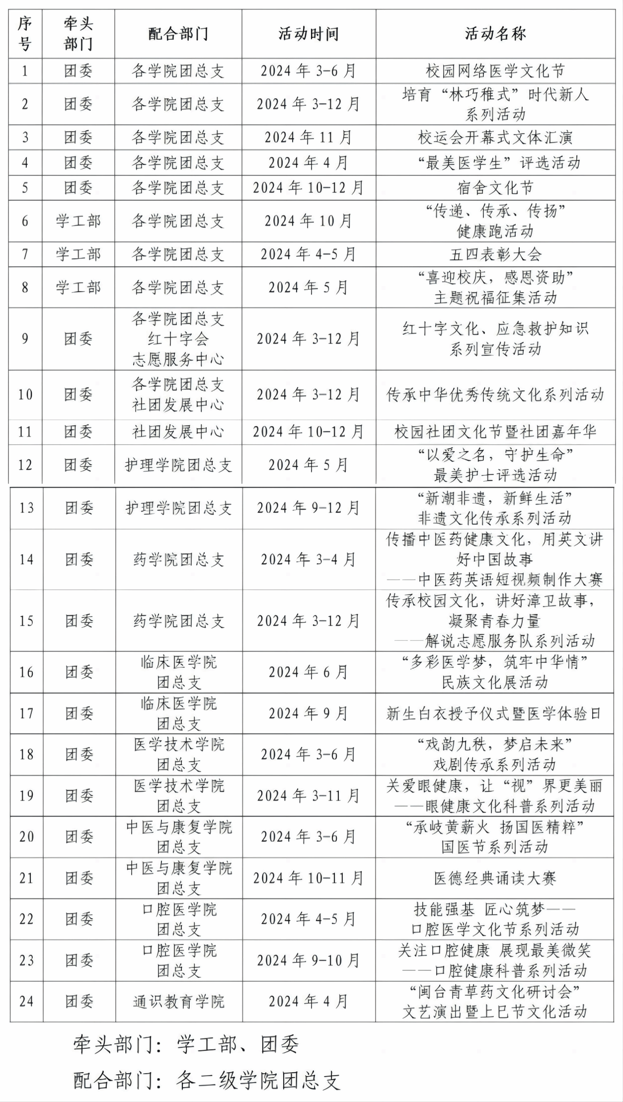 配合部门:各二级学院团总支