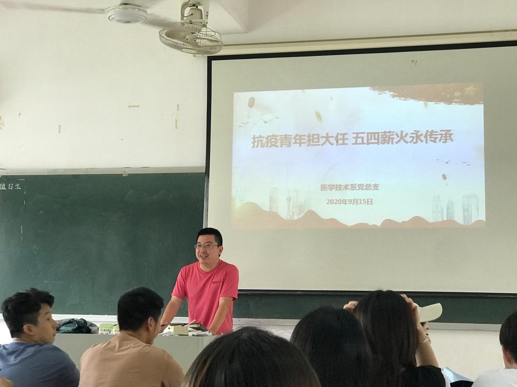 为了将抗击疫情作为教学最好的教材,不断提升学生干部的工作能力。9月15日,医学技术系党总支副书记为系部学生干部上了题为“抗疫青年担大任,五四薪火永传承”的主题党课。