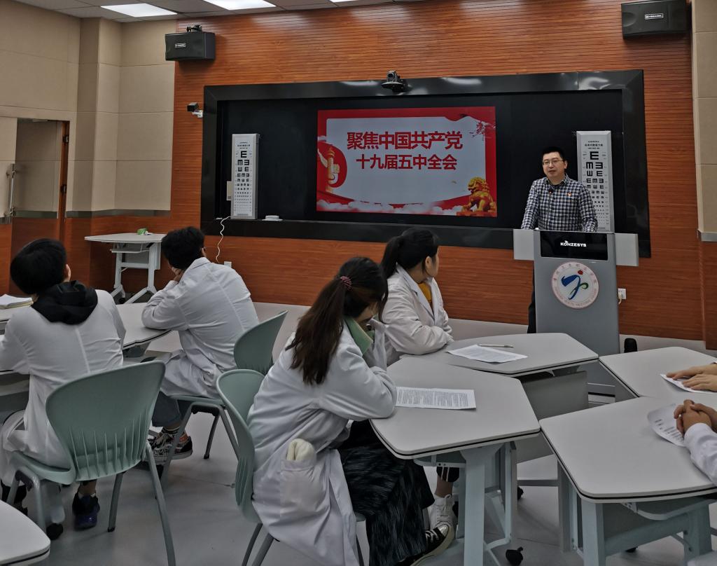 12月18日上午,医学技术系党总支副书记在图书馆6楼智慧教室为2020级眼视光技术专业学生召开党的十九届五中全会精神宣讲活动。