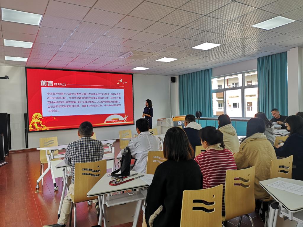 在集体学习中,党员教师认真学习领会。宣讲后,党员教师展开热烈讨论,谈思想认识,讲学习体会。通过本次活动党员教师表示对“十四五”时期我国将进入新发展阶段的重大判断等有了充分的认识、更深的理解。