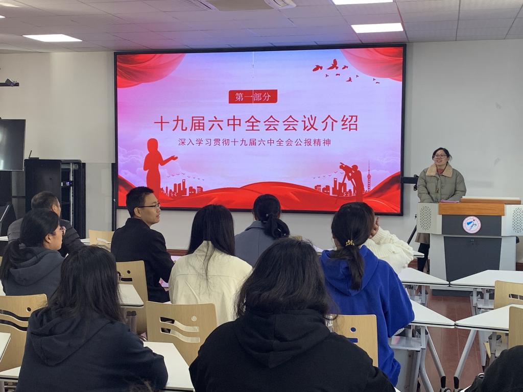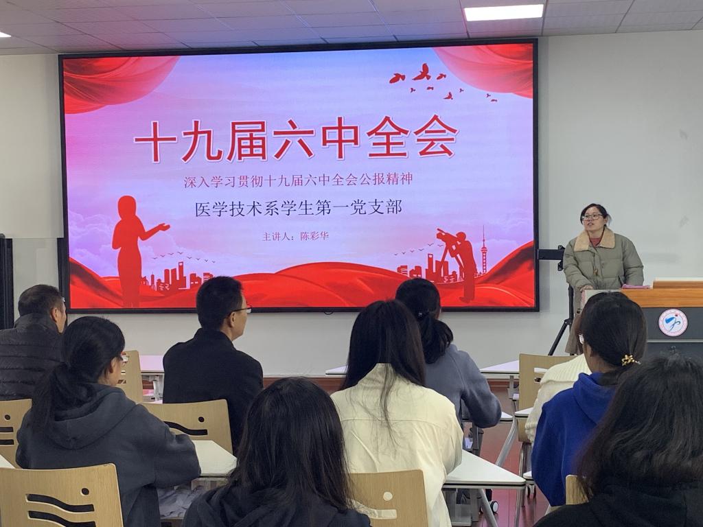 11月30日,医学技术系学生第一党支部书记陈彩华老师为支部党员教师与入党积极分子们开展党的十九届六中全会精神宣讲活动。