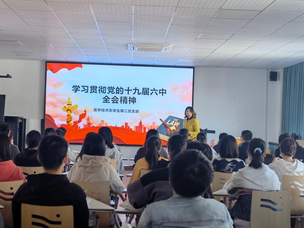 历史照亮未来,奋斗未有穷期。12月2日下午,医学技术系学生第二党支部书记郭月丽老师在明智楼412智慧教室为同学们开展《学习贯彻党的十九届六中全会精神》宣讲。