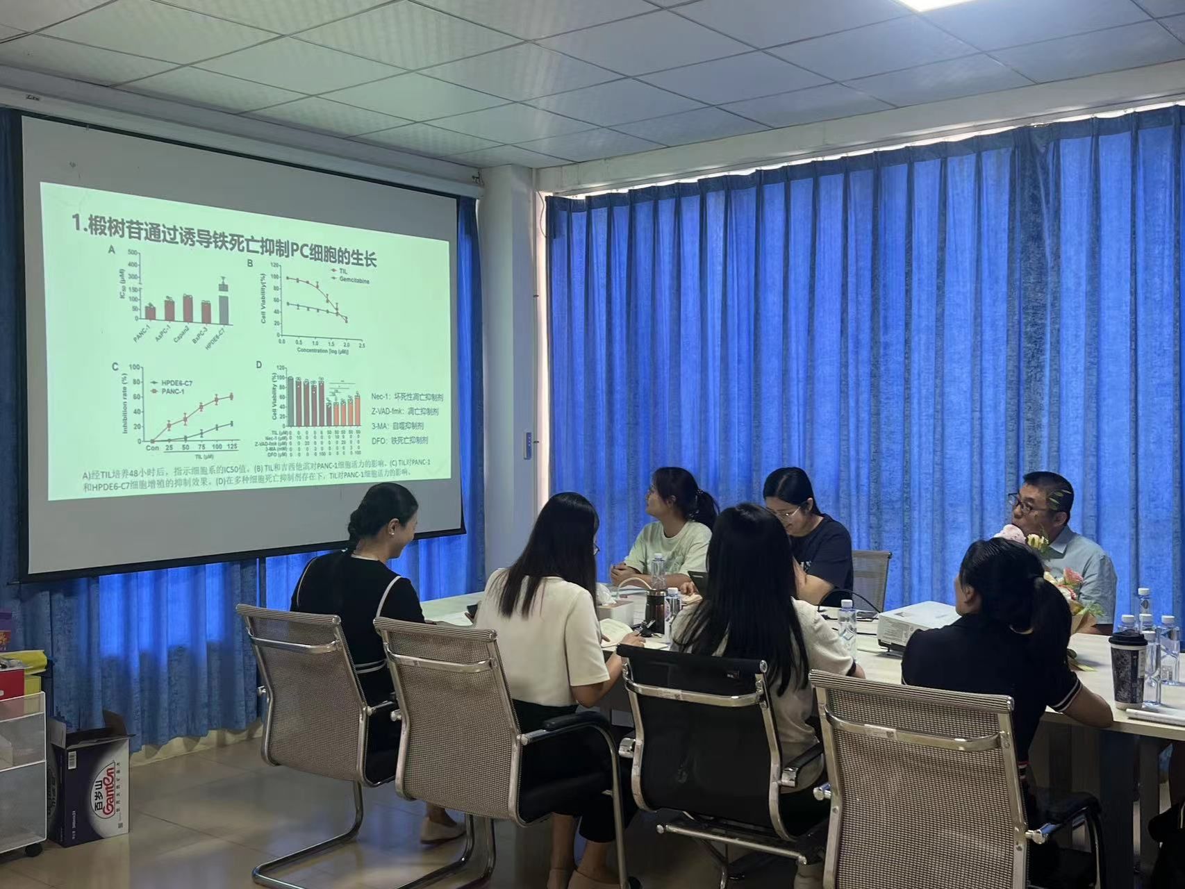 张春斌教授对文蓉同学的汇报给予了高度评价,他赞扬了文蓉在文献阅读和学术汇报方面的出色表现,并鼓励她继续保持这种积极向上的学习态度,不断深化对科研领域的理解和探索。同时,张教授也强调了科研团队内部学术交流的重要性,他希望团队成员能够相互学习、共同进步,为推动抗癌研究的发展贡献更多的智慧和力量。