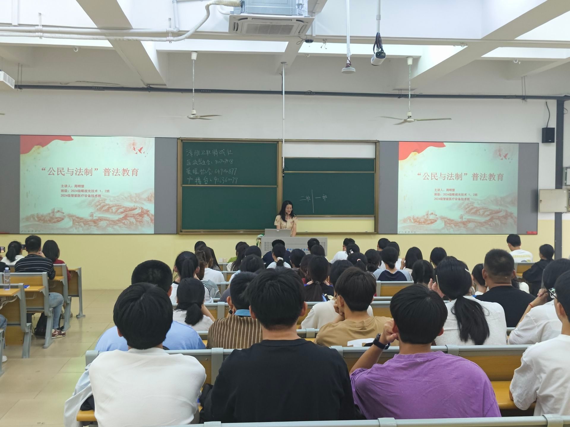 为增强同学们的法律意识,弘扬法治精神,共建和谐稳定的校园,我院各班新生辅导员于9月25日组织开展以“弘扬法治精神,共建和谐校园”为主题的2024级新生入学普法教育宣传活动。