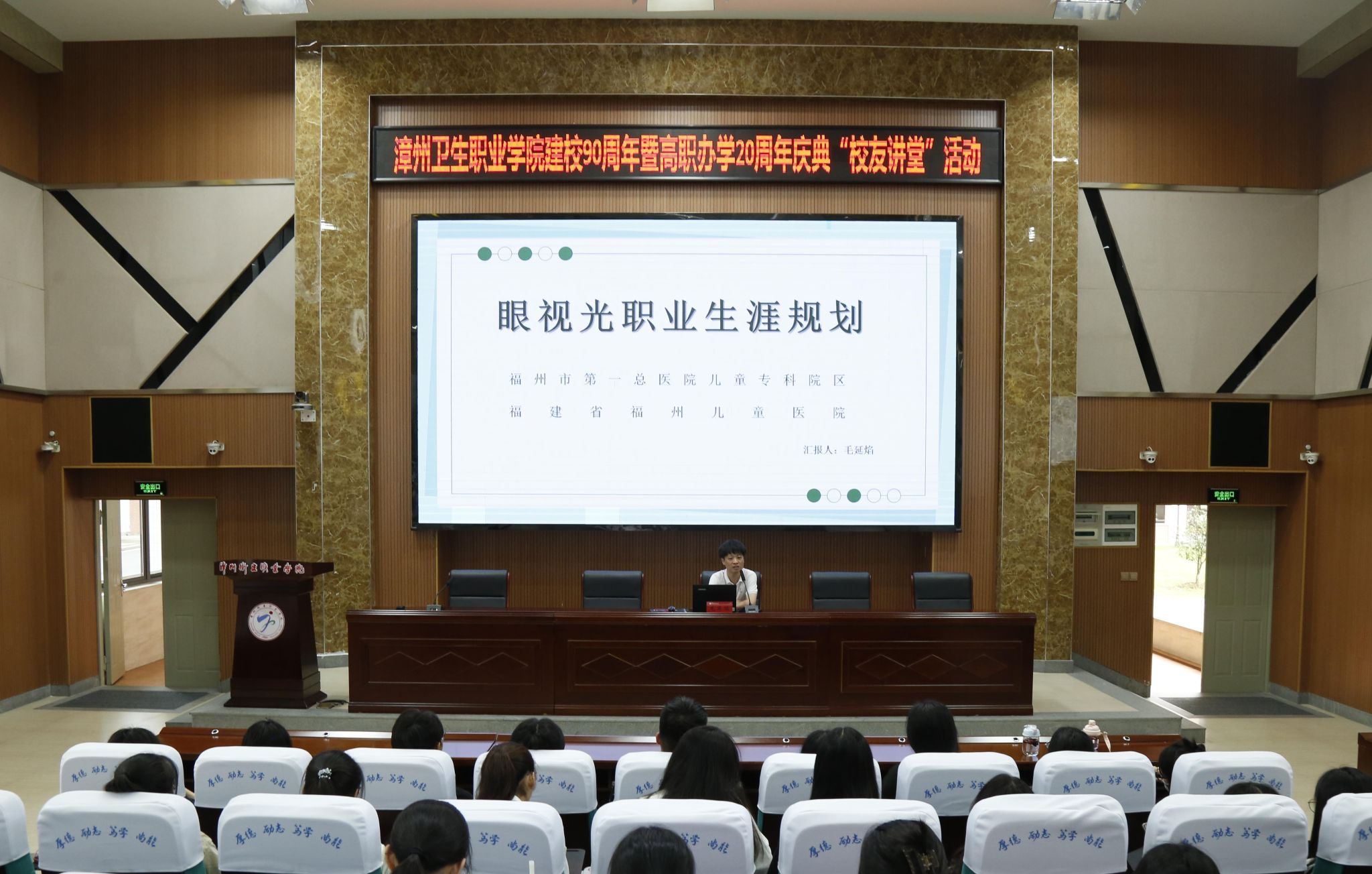 10月9日下午,第八期校友讲堂在学术报告厅举行,2014届眼视光技术专业的优秀校友毛延焰受邀返校开讲,医学技术学院相关领导及180余名学生参加活动。