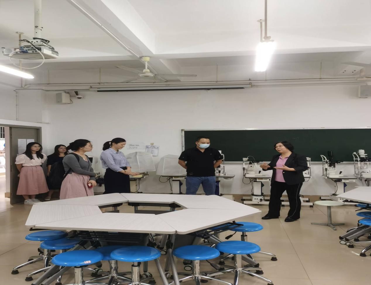 活动中首先参观了我院的眼视光技术实训室。实训室内先进的设备和完善教学设施给来访的教师们留下了深刻的印象。他们对医学技术学院在眼视光技术专业实训方面的投入和取得的成果表示了高度赞赏。在接下来的人才培养交流学习环节中,双方就眼视光技术专业的课程设置、教学方法、学生实践能力培养等多个方面进行了深入探讨。医学技术学院的教师们分享了本院在眼视光技术专业人才培养方面的经验和成果,而福建卫生职业技术学院的教师们也介绍了他们在教学和实践中的宝贵经验。