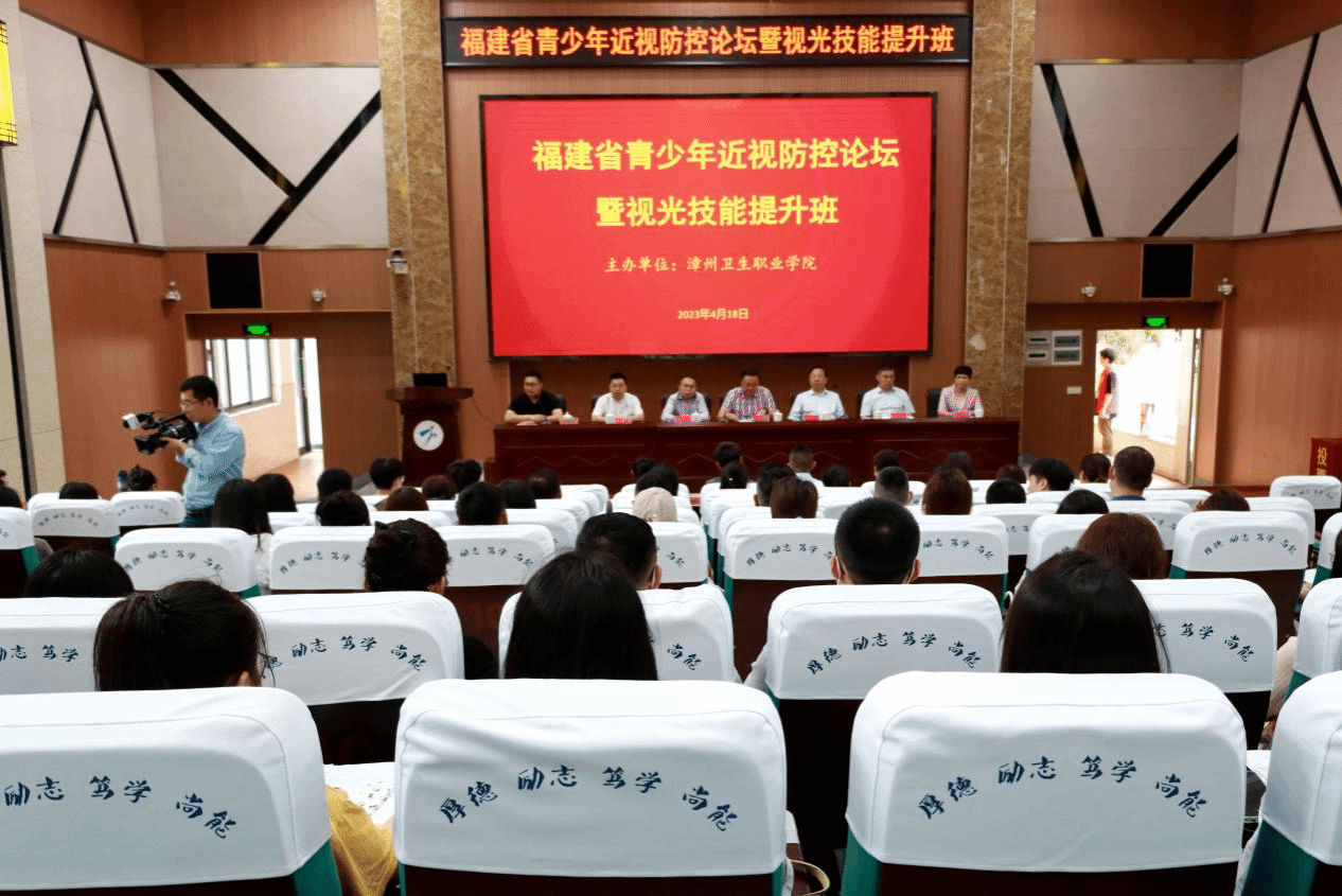 为有效推动福建省儿童青少年近视防控工作,4月18日下午,2023年福建省近视防控论坛暨视光技能提升班在漳州卫生职业学院顺利举行。福建医科大学附属第一医院眼科中心主任、福建省医学会眼科学分会主任委员朱益华,漳州卫生职业学院党委副书记黄乃光出席开幕式并致辞,来自各地市的百余位眼科医疗机构代表、眼视光从业者参与此次论坛 。