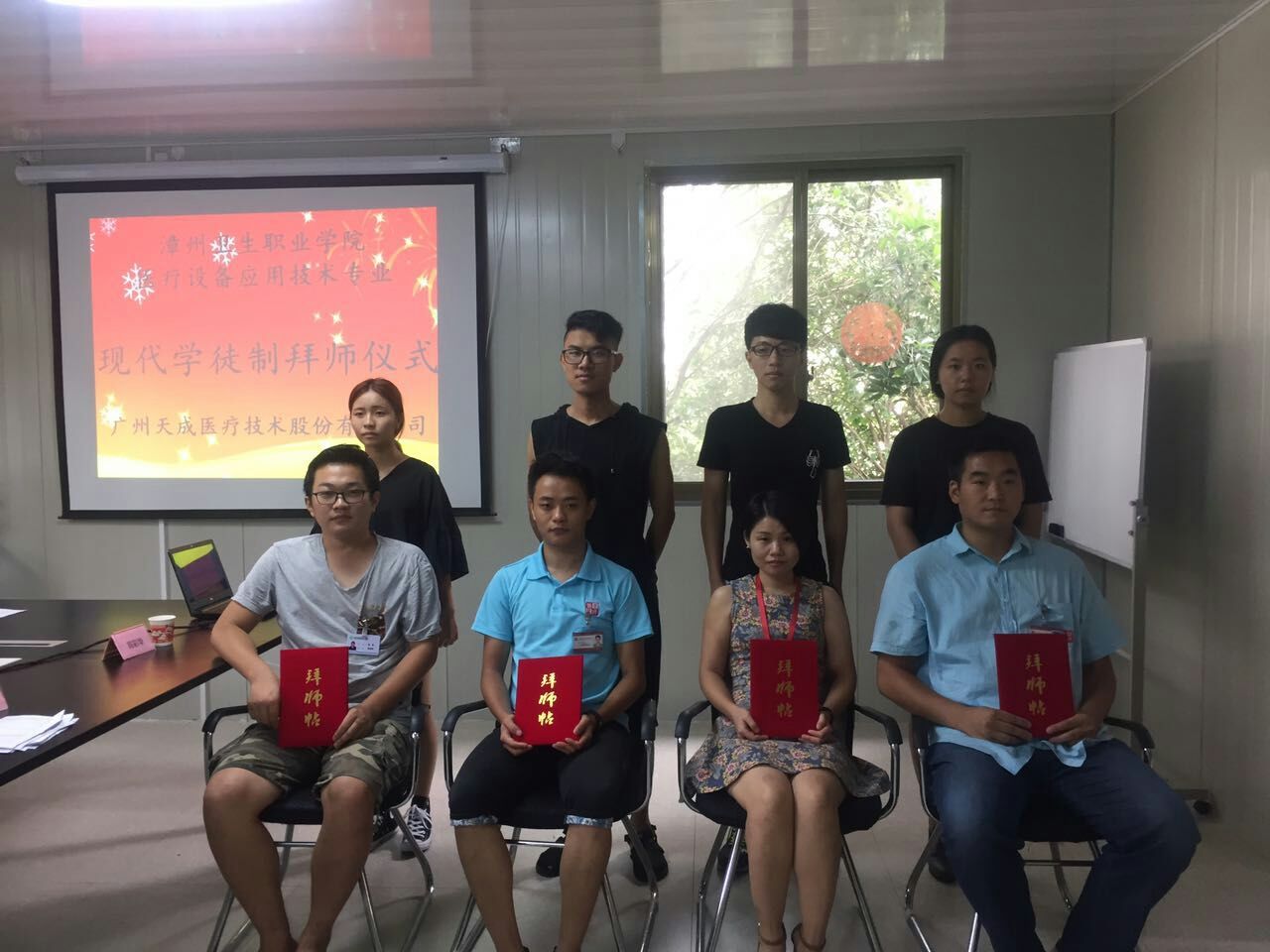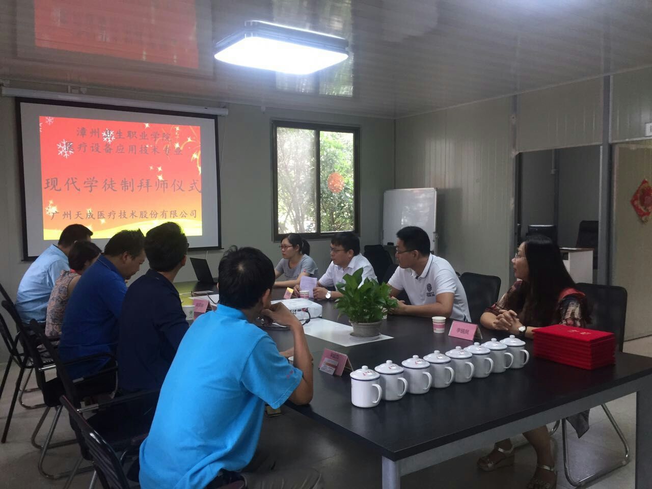 “递拜师帖!”“敬茶!”9月4日,漳州卫生职业学院与广州天成医疗技术有限公司在建阳市第一医院医疗设备保障服务中心会议室举行“现代学徒制”拜师仪式,仪式采用我国传统的拜师礼仪进行。建阳市第一医院宋汉祥副院长、学院医学技术系唐忠辉主任、天成医疗技术有限公司建阳点负责人苏尚祥主管、学院相关老师及企业师傅出席了仪式。