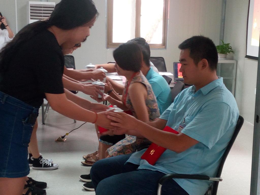 随后进行师徒结对拜师。2016级医疗设备应用技术专业“现代学徒制”建阳教学点的8位徒弟按照传统拜师礼仪,有轶序的分别向8位师傅递交拜师帖、敬上茶水、鞠躬谢恩、并合影留念。8位徒弟拜师求技,渴望在师傅的教导下学得一技之长,为社会服务。一个小时的仪式活动在热烈欢快的气氛中圆满结束。