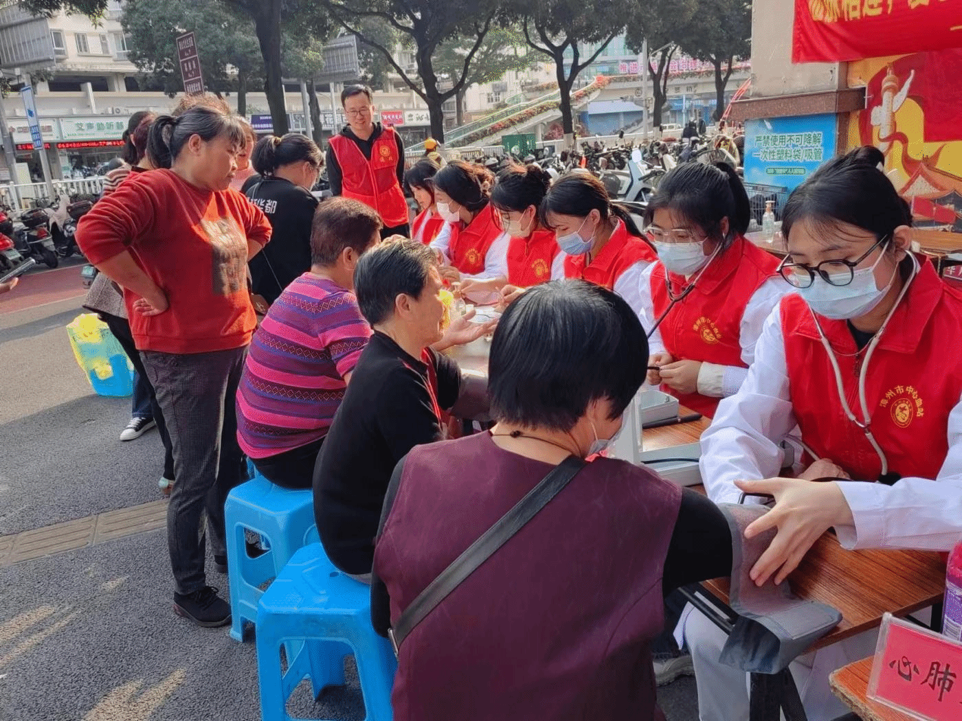 为了讲好献血者故事,留下美好瞬间的形象,带动广大群众更好的开展无偿献血、造血干细胞等捐献宣传工作,4月11日下午,漳州市红十字会、漳州市中心血站、漳州卫生职业学院医学技术系联合芝山社区在新华都门口开展免费测血型、测血糖、量血压及急救知识科普等便民服务活动。