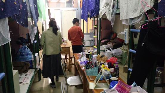 上午9点,由系部总支副书记牵头,组织学工办和相关辅导员来到宿舍,主要排查宿舍水电安全,易燃易爆等危险品、是否乱拉电线及使用大功率电器情况。经过排查,共查收电吹风、电热水壶各一件,香烟、打火机若干件,个别宿舍存在乱拉电线,排插放在床铺等现象。排查结束后,系副书记叮嘱辅导员必须加强安全教育,对当事学生要及时进行批评教育,并让存在安全隐患宿舍做好整改。