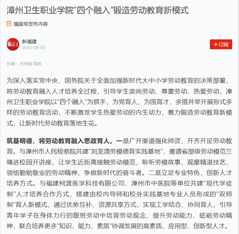 上一条:新福建:“翰墨飘香感知文化”书法大赛圆满结束 下一条:新福建:漳州卫生职业学院:“清洁楼道,健康校园”