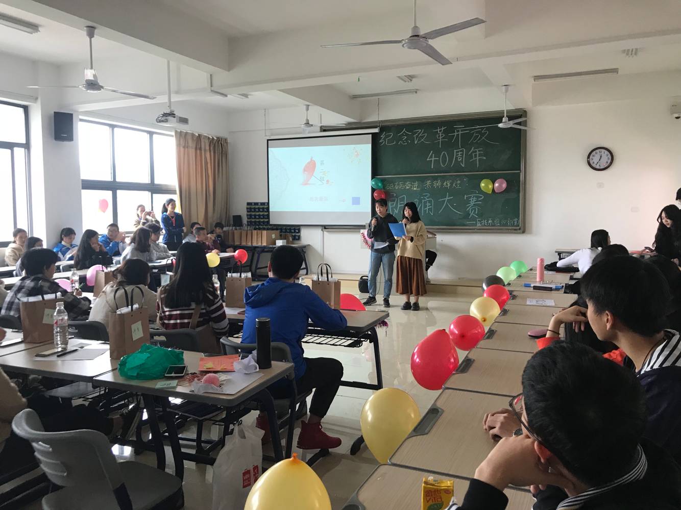 为纪念改革开放40周年,激发当代大学生民族复兴大任的坚定信念,医学技术系学生会于笃学楼305教室举办“砥砺奋进,共铸辉煌”为题的朗诵比赛。