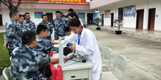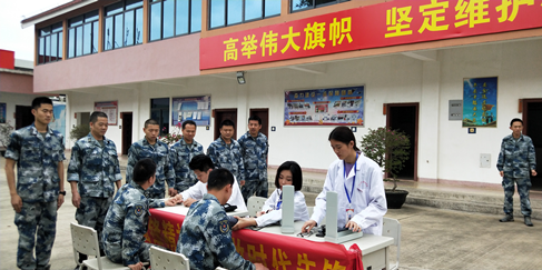 5月7日,漳州卫生职业学院医学技术系的青年志愿服务队的志愿者携带血压计、血糖仪等医疗器械走出校门,来到了中国人民解放军空军94900部队,举行了“共建军民融合,争做时代先锋”为主题的义诊活动,为部队的战士们送去了一份关心与慰问。