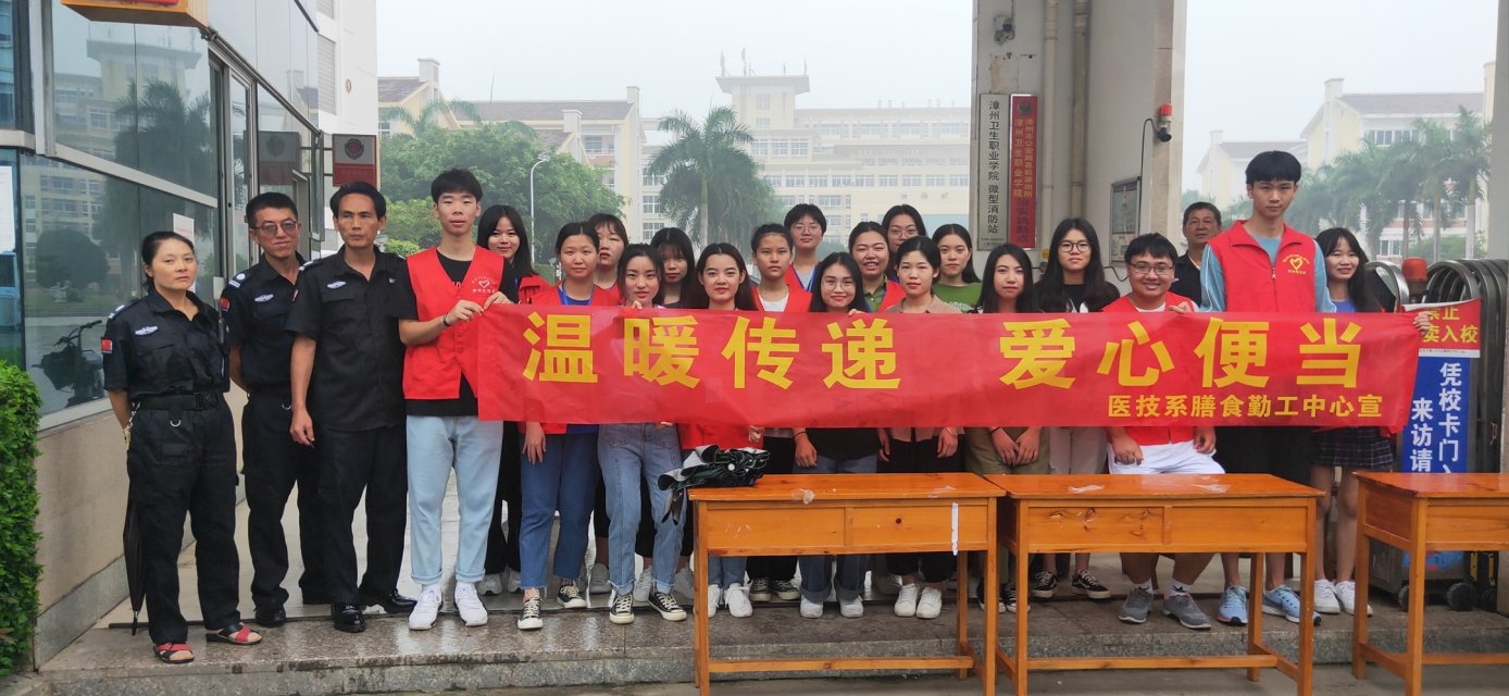 为更好地用爱心传递正能量,发挥“赠人玫瑰,手有余香”的精神风貌,致敬辛勤的外卖骑手,让他们吃上一顿热腾腾的饭,更好的投入工作。2019年5月25日,在后期管理处的组织下,医学技术系膳食勤工中心带领十九位学生在第一食堂和学院南门组织了“温暖传递,爱心便当”的活动。由同学们亲自下厨做一份丰盛的午餐来感谢每一位骑手,传递出每一份温情。