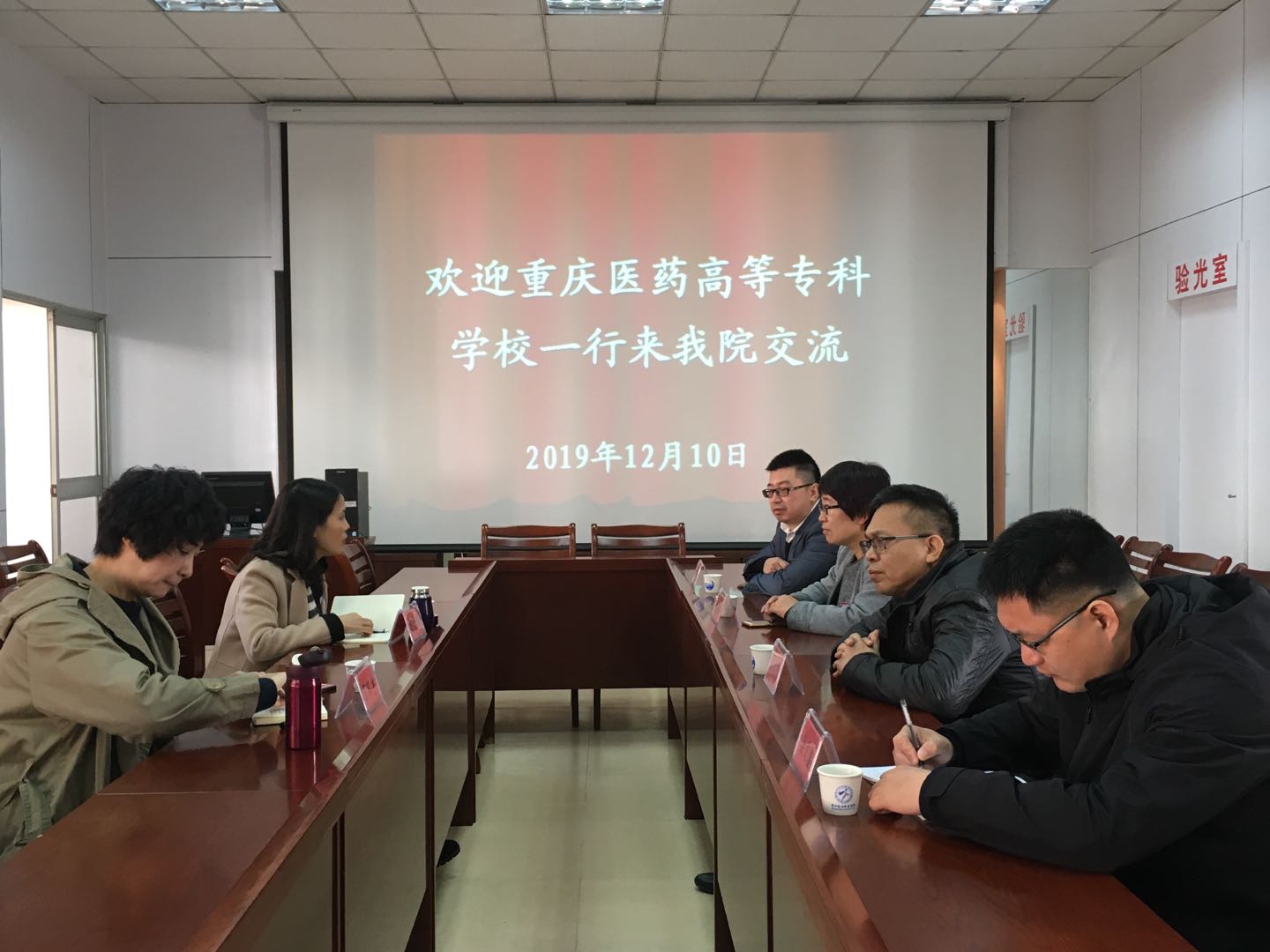 12月10日重庆医药高等专科学校医学技术学院院长胡雪琴、副院长丁环宇一行2人来我院开展医学检验技术专业建设经验交流,学院副书记黄乃光携医学技术系、基础医学部主要领导接待来宾。