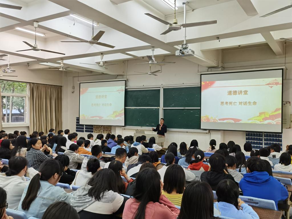 12月1日下午,医学技术系党总支副书记在明德楼104教室开展了以“思考死亡 对话生命”为主题的道德讲堂活动。本次讲堂由医学技术系副书记主讲,系部180多名学生参加。