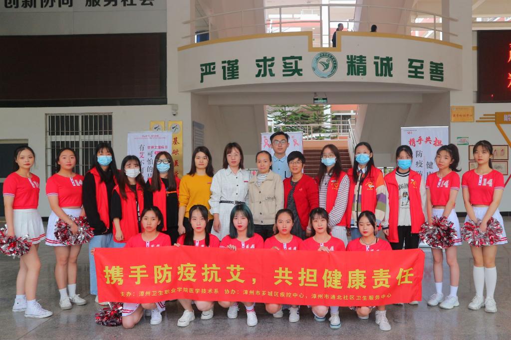 在12月1日第33个世界艾滋病日到来之际,医学技术系协同漳州市芗城区疾控中心、漳州市通北社区卫生服务中心在明智楼一楼大厅开展了以“携手抗疫防艾,共担健康责任”为主题的防艾宣传进系部的系列活动。