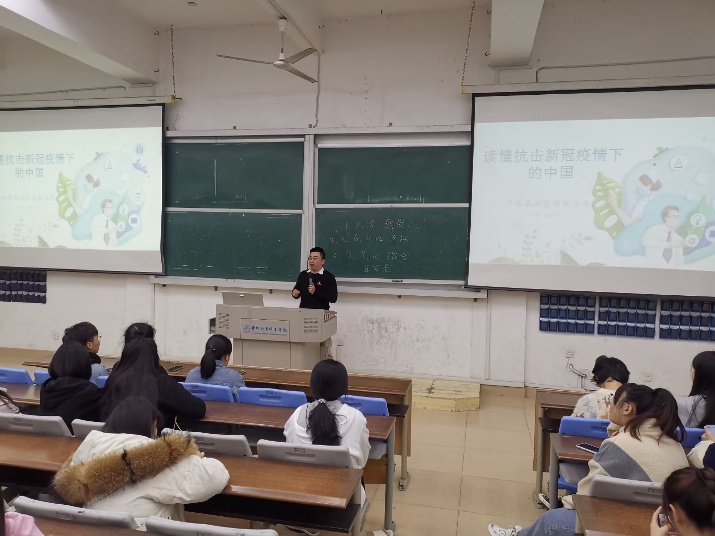 为贯彻落实省、市寒假前后学校疫情防控工作会议精神,深入学习领会抗击疫情的“中国答卷”,以个人之躯,构建美好未来。1月4日晚上,医学技术系学工队伍走访学生宿舍与学生深入谈心,医学技术系副书记在明德楼202召开“读懂抗击新冠疫情下的中国”师生互动交流座谈会。