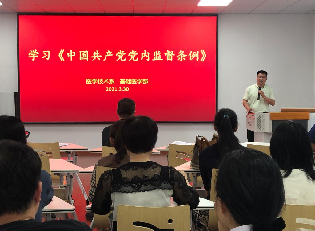 3月30日医学技术系党总支在明智楼412组织开展学习《中国共产党党内监督条例》的党课活动,由医学技术系副主任、党总支宣传委员徐文鑫主讲。