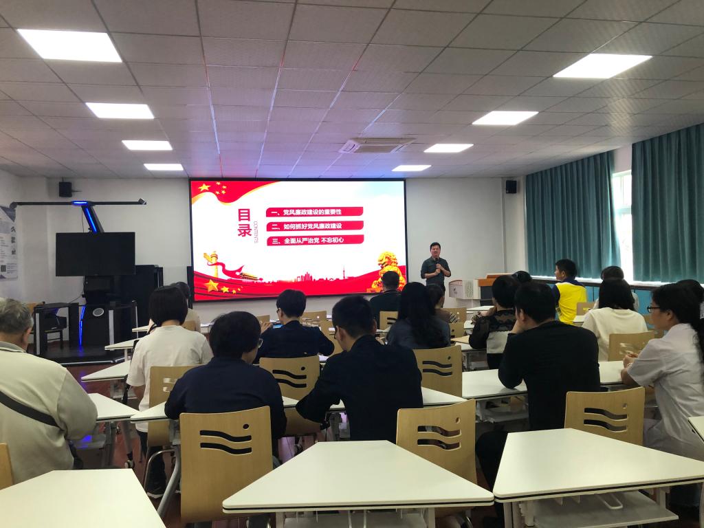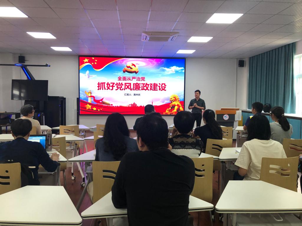 3月30日医学技术系党总支在明智楼412组织开展学习“全面从严治党抓好党风廉政建设”为主题的党课活动,学习《党委(党组)落实全面从严治党主体责任规定》文件精神,由党总支纪检委员黄仲庆主讲。