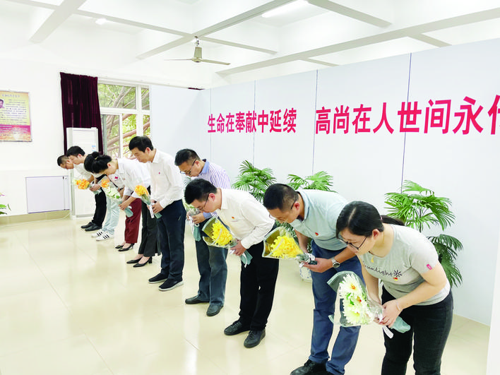 “我决心竭尽全力除人类之病痛,助健康之完美,维护医术的圣洁和荣誉………”宣誓仪式后,大家排着整齐的队伍,走上二楼的医学伦理教育馆,追思、祭莫奉献大爱的遗体和器官捐献者。