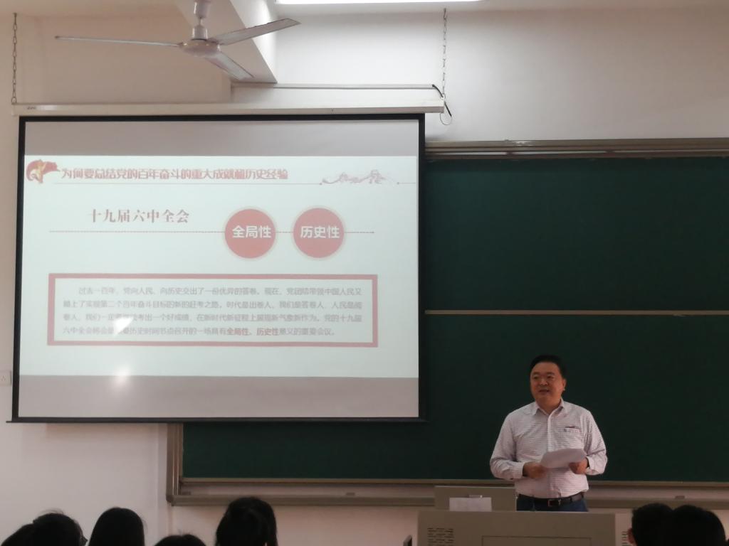 课上,黄乃光围绕党的十九届六中全会审议通过的《中共中央关于党的百年奋斗重大成就和历史经验的决议》,从十九届六中全会会议介绍、为何要总结党的百年奋斗的重大成就和历史经验、中国共产党百年奋斗的辉煌成就、中国共产党百年奋斗的经验启示等四个方面,带领全体同学深入学习了“三个‘历史决议’”“三个统一”“三个需要”“两个特点和四个揭示”“一个主题和四个阶段”“十三大成就”“三次历史性飞跃”“两个确立”“五大历史意义”“十大历史经验”等重要内容。