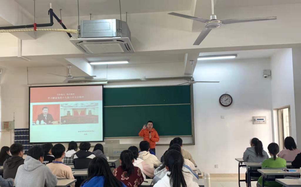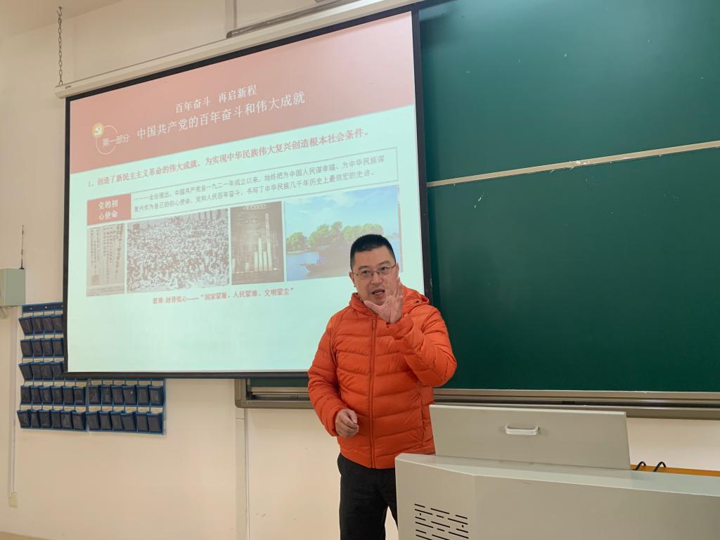 12月3日,医学技术系党总支书记高林向医学技术系团总支、学生会全体学生干部宣讲党的十九届六中全会精神。
