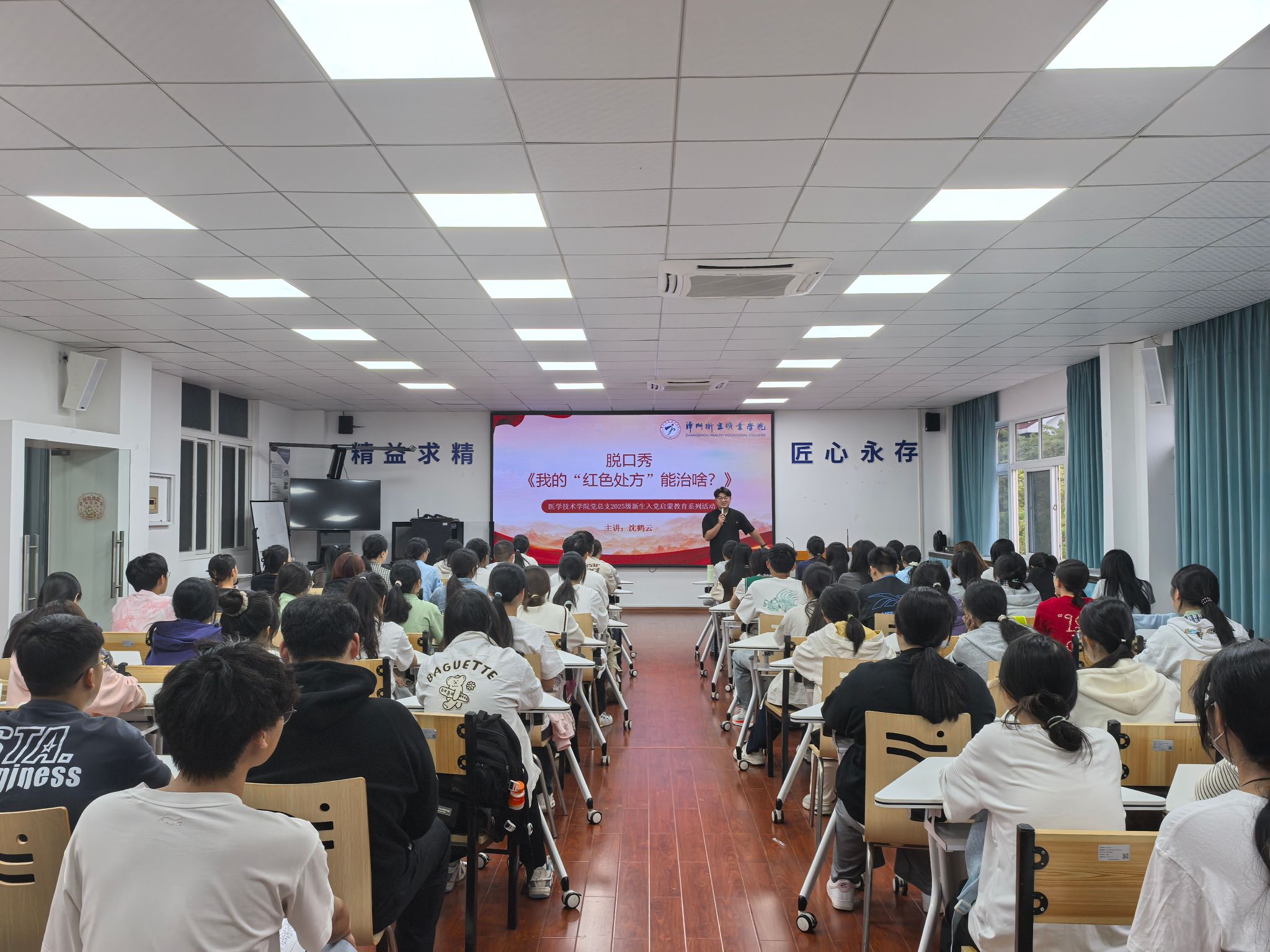 创新推出《我的“红色处方”能治啥?》党建主题脱口秀。主讲人化身“思政大夫”,以单口戏剧和现场互动形式,融合党建理论、医学专业与入党动机探讨,打造轻松活泼又发人深省的宣讲场景,为医学生开具一剂别开生面的“欢乐良方”,让思政教育在欢声笑语中入脑入心,激发学生主动思考与情感共鸣。