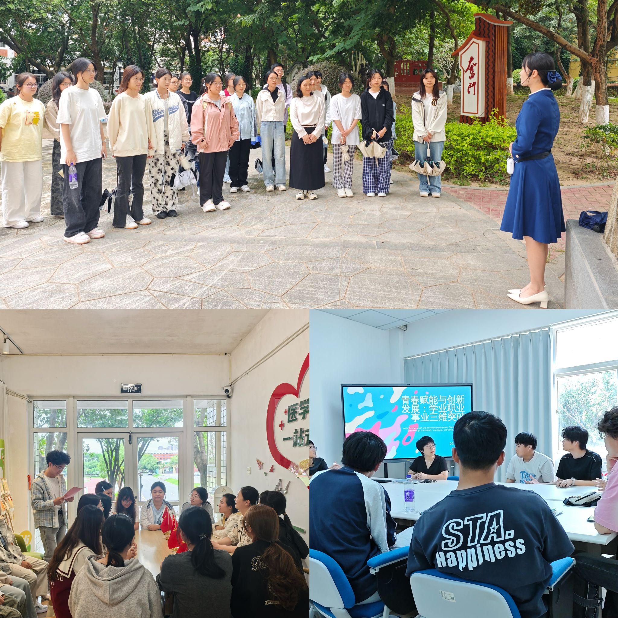 与学生开展职业发展座谈会,通过“学业-职业-事业”三阶段联动与“红烛先锋助学驿站”精准辅导,助力学生实现从知识到能力的跨越式成长;在“一站式”学生社区开展红色朗读活动,通过诵读领袖寄语、抒发青春誓言,强化身份认同与使命担当,形成“浸润—赋能—践行”的育人链条。