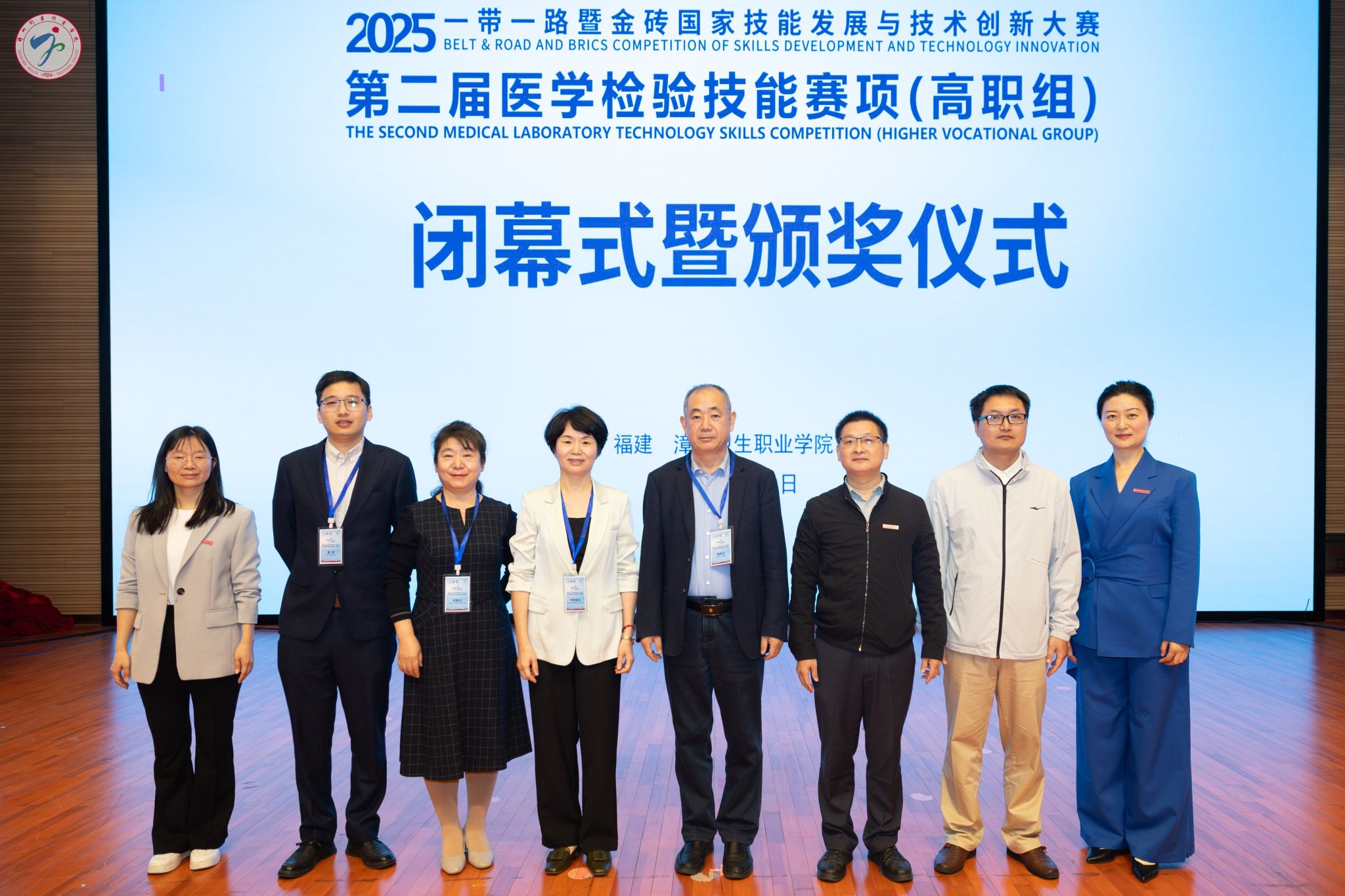 11月30日下午,2025一带一路暨金砖国家技能发展与技术创新大赛第二届医学检验技能赛项(高职组)闭幕式在我校体育艺术中心举行。校党委委员、副校长蔡韶滨,赛项专家组长、裁判长、仲裁长及大赛组委会执委会国内竞赛办公室相关负责人共同出席闭幕式。来自各参赛院校的选手、指导老师及裁判共同参加。闭幕式由校医学技术学院党总支书记主持。