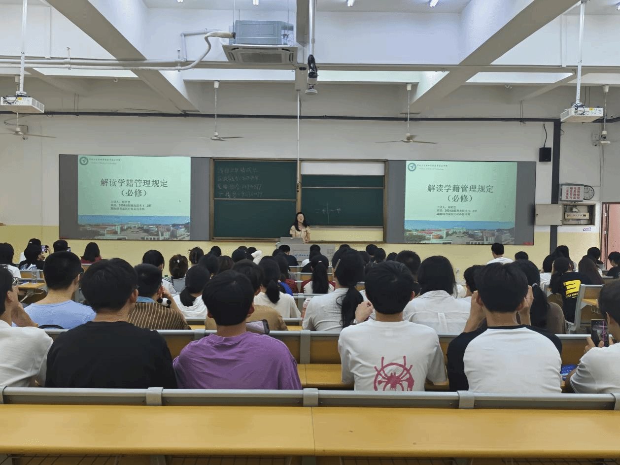 为了加强新生对学籍管理制度的理解和认识,熟悉学校各项管理规章制度,迅速适应大学生活,我院于9月9日开展了2024级新生入学教育之学籍管理规定解读。此次活动由各班辅导员担任主讲人。