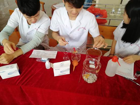 2018年5月12日,我院举办“校园开放日”的活动,其中医学技术系“爱”行动服务队与膳食勤工中心以及16级卫检班一起在明智楼大厅举办水质安全检测的活动。
