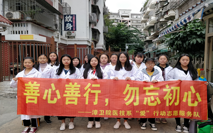 2018年12月9日早上7:30,医学技术系“爱”行动志愿服务队出发去佳宛小区举行义诊活动。此次活动的内容主要包括免费为社区居民测量血压和血糖,并为居民普及健康小常识,提高他们的健康意识。