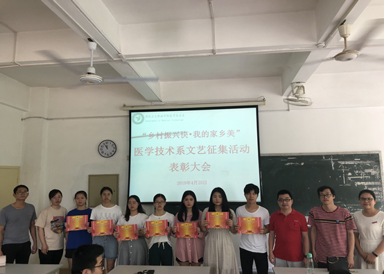 4月25日下午,医学技术系于明德楼211举办了以“乡村振兴快 我的家乡美”为主题的文艺活动颁奖。本次活动由医学技术系副书记主持,系学工办主任、医学技术系辅导员、获奖学生及学生会干部参加了此次活动。