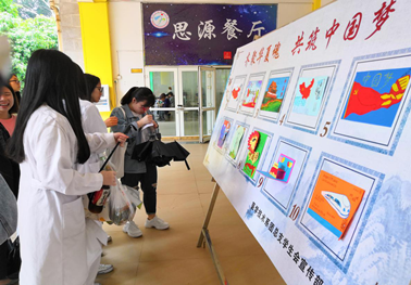 由医学技术系团总支学生会宣传部举办的“齐聚华夏魂,共筑中国梦”贺卡制作大赛于4月16日中午在思源餐厅一楼大厅举行。本次活动负责人把进入决赛的十幅作品展示在餐厅大厅,由同学们现场进行投票表决。