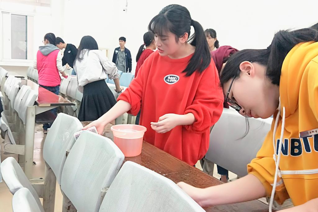 为提高大学生的文化素质,增强同学们不乱涂乱画的意识,近日我系青年志愿者服务中心开展了“清理课桌,优化学习环境”为主题的系列活动。