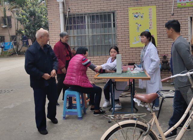 近日,医学技术系青年志愿者服务中心的志愿者分别前往厦浦小区、湖内新村、将军花园举办“关怀进社区,健康送上门”义诊活动,为社区居民测量血压血糖。