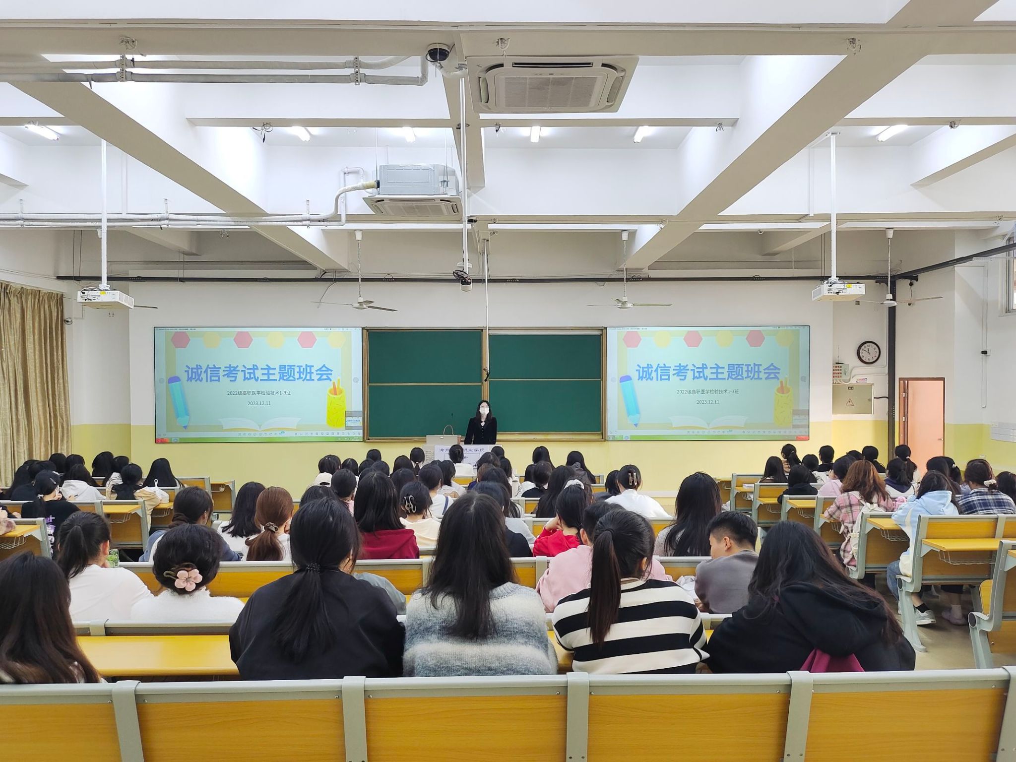为了提高学院学子诚信考试的意识,杜绝考试舞弊现象的发生,切实加强学院学风建设,严肃考风考纪,营造公平、公正、诚信的考试氛围,医学技术学院于12月12日组织开展“考之以诚,答之以信”的教育主题班会。