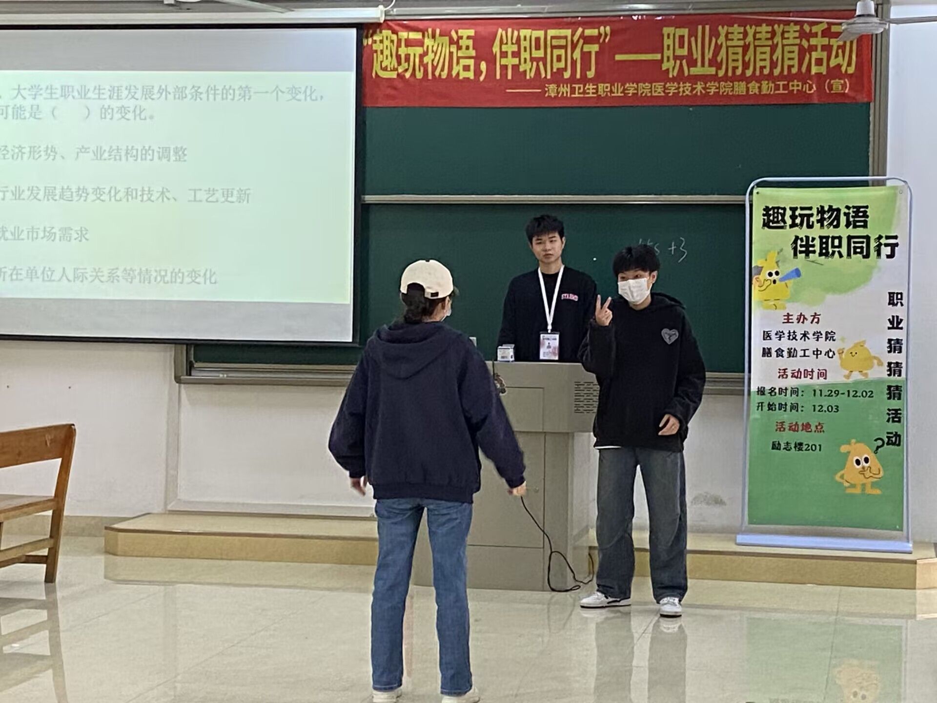 为更好地帮助大学新生树立职业生涯规划意识,明确未来奋斗目标,激发学业活力。12月3日,医学技术学院在厚德楼201举办了一场“趣玩物语,伴职同行”活动。