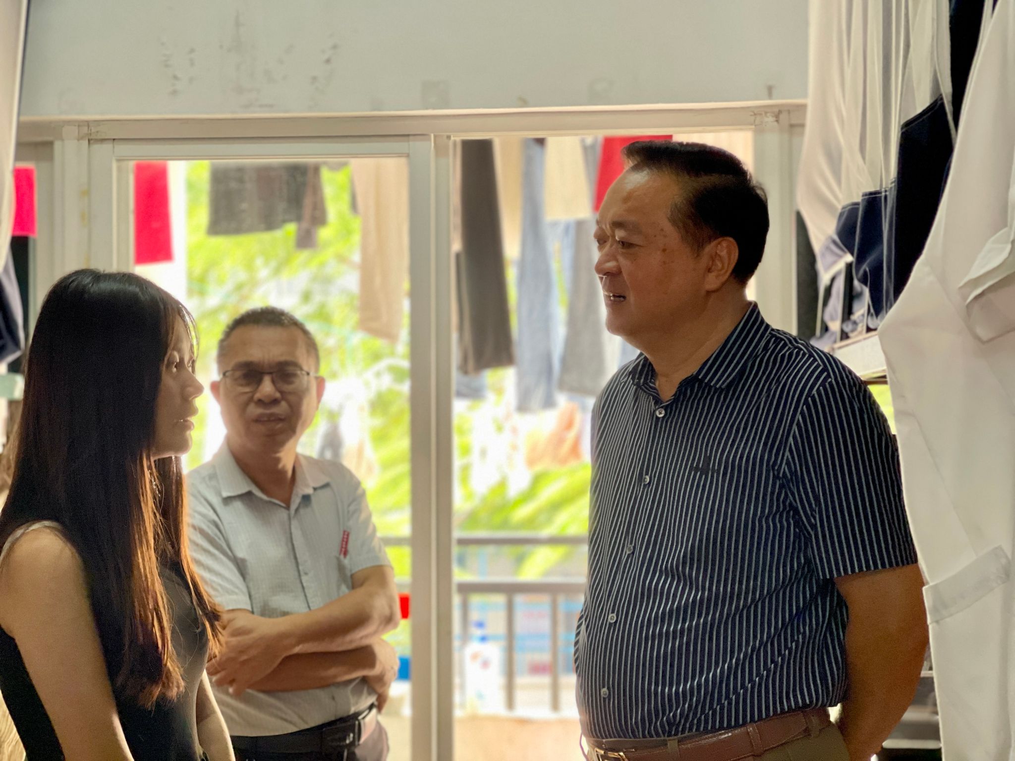走访中,黄乃光就宿舍设施、生活饮食习惯、大学生涯规划、专业就业前景等方面与同学们进行了亲切交谈。他表示,感谢各位新生对学校工作的全力支持和充分理解,学校将会尽一切力量及时完善宿舍设施,为大家提供更为舒适的住宿环境。同时,黄乃光表示,在学习上、生活上遇到的困难,各位同学都可以及时向学校领导、辅导员反映,寻求帮助,所有老师都会努力帮助大家尽快融入漳卫院这个新环境。最后,他嘱咐新生们要遵守宿舍管理规定,团结互帮互助,追求共同进步,做一名信念坚定、乐观向上、积极进取的新时代大学生。