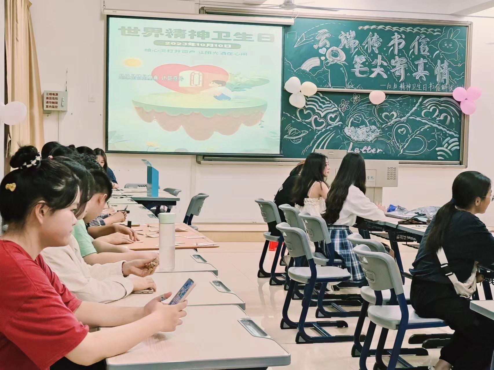 为推动主题教育走深走实,聚焦为学生办实事解难题,完善心理育人机制,营造积极向上、健康文明的校园氛围,引导大学生关注心理需求,拓展大学生心理健康知识面,医学技术学院以10月10日“世界精神卫生日”为契机,于10月9日-10月16日开展了“云端传书信,笔尖寄真情”为主题的书信解忧活动。
